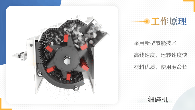 高線速度,運轉(zhuǎn)速度快;采用新型節(jié)能技術(shù),比傳統(tǒng)細碎設(shè)備更節(jié)能。